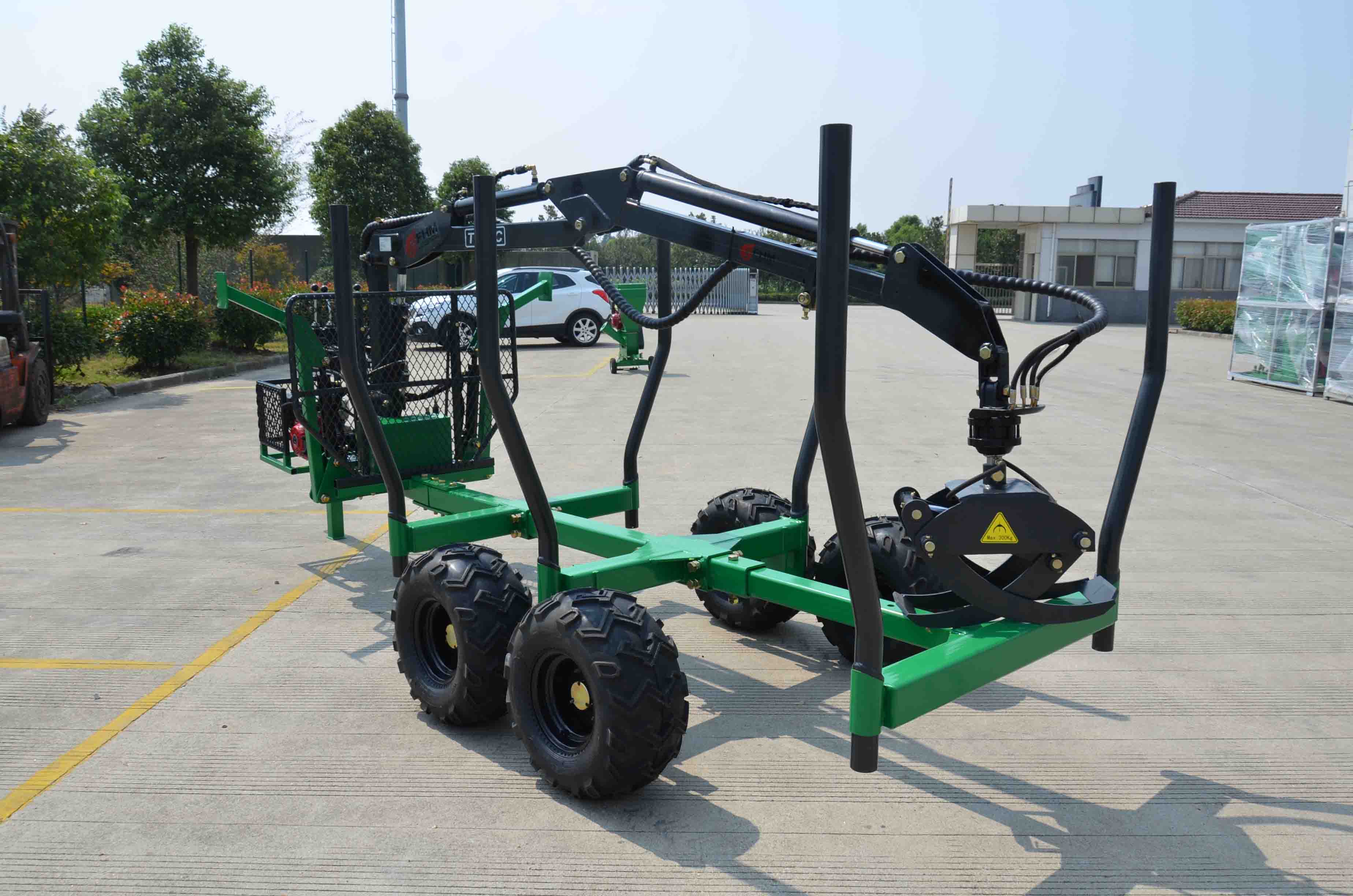 The LOG LOADING trailer is hydraulically supported.