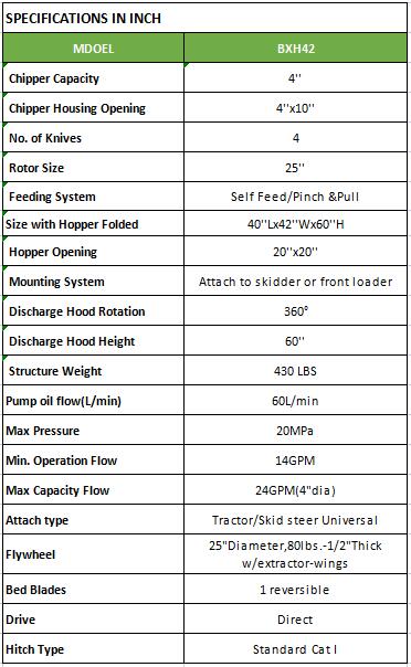 This easy to use attachment features a 20" x 20" self-feeding hopper opening to handle large, awkward size branches up to 4" in diameter, and angles brush against the blades as it pulls material into the chipper.