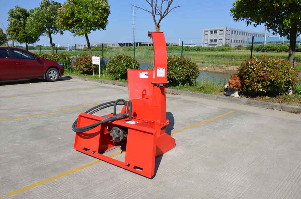 The versatility of our Skid Steer Mounted wood chipper is unsurpassed. The chipper can be placed in almost any location. The chipping disk is hydraulically powered from your skid steer loader's hydraulic lines to your auxiliary couplers, start your machine and turn on the flow. The pressure and flow of your machine will power the chipper.